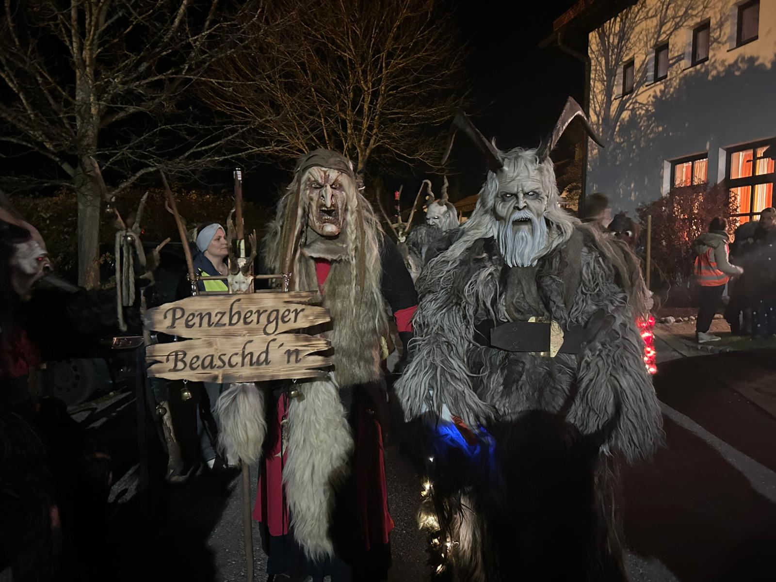 Wenn die Beaschdn schließlich zum ersten Mal in voller Montur auftreten, bebt die Luft. Dunkle Hörner, wilde Larven, schwere Schellen – und dieser einzigartige Mix aus Disziplin, Tradition und Ursprünglichkeit, der die Penzberger seit Jahren auszeichnet. Wo sie auftauchen, entsteht sofort Gänsehaut: das rhythmische Stampfen, der Rauch, der metallene Klang der Glocken.